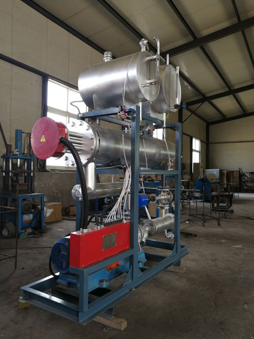 1、能在較低工作壓力下(0.8MPa)實現(xiàn)較高工作溫度(350℃),替代各種傳統(tǒng)加熱形式,為用熱